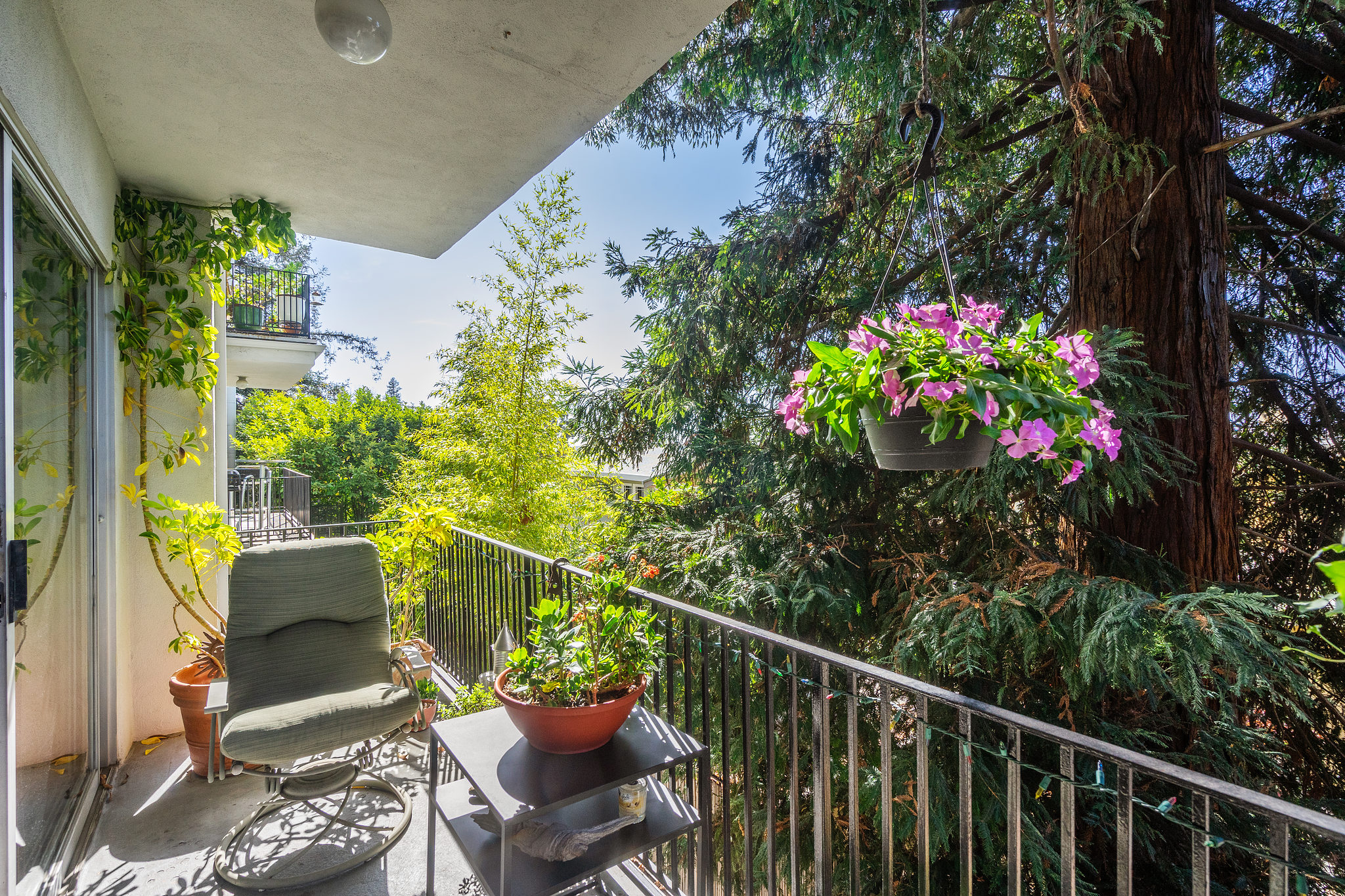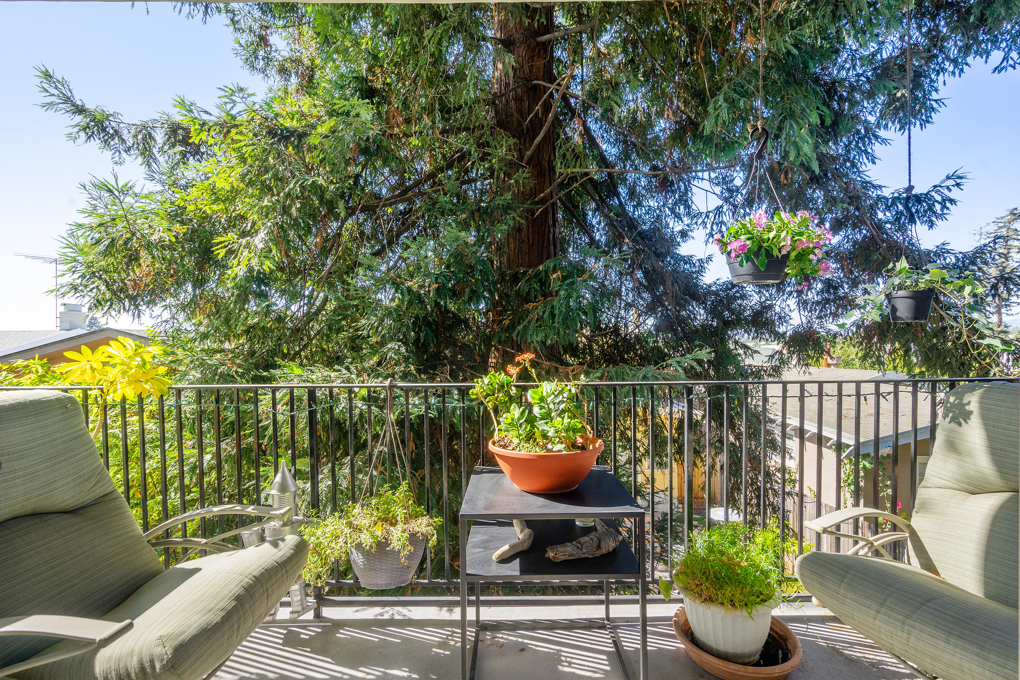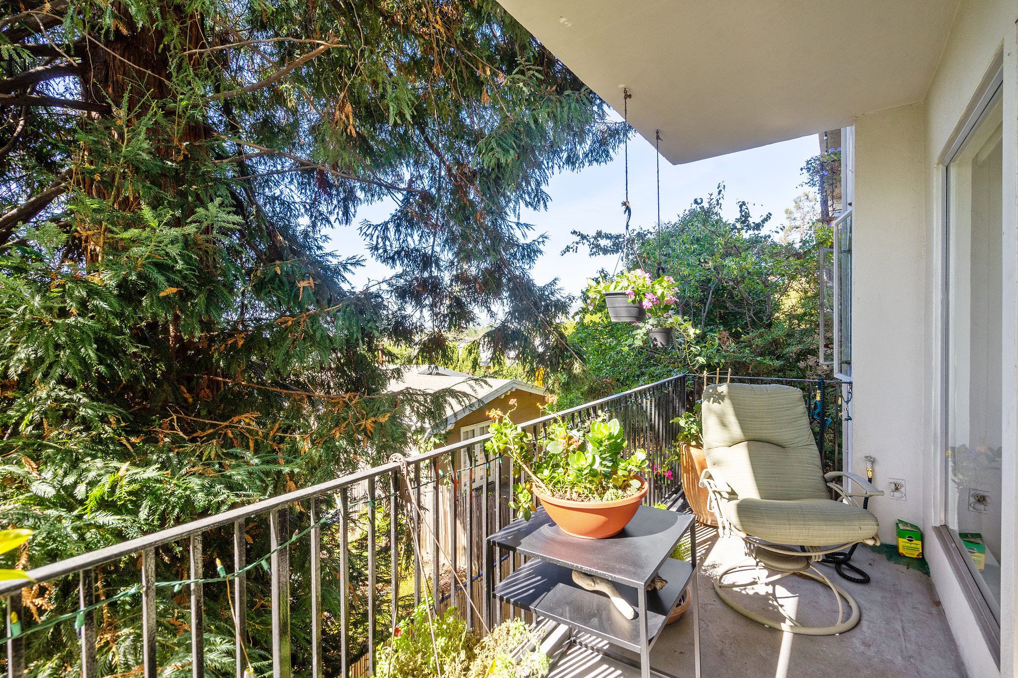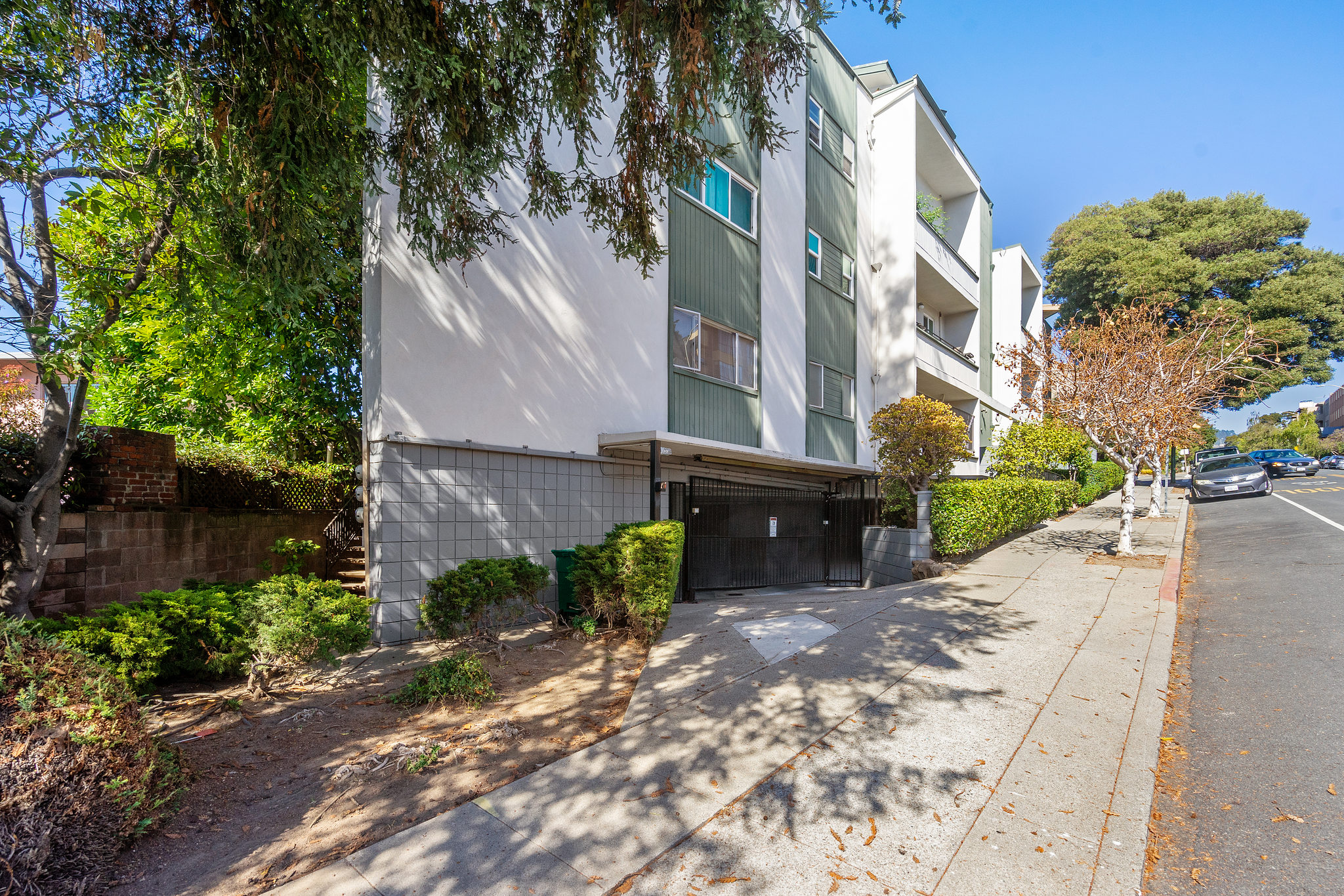 A sleek, well kept haven awaits at 5290 Broadway Terrace. The entryway greets you with two generous closets leading into a spacious, living room/dining room combo with custom built in bookshelves. Unwind the day with resort-like vibes thanks to the massive windows and sliding door leading to the patio. A gorgeous redwood tree provides privacy and when fog lifts, the City lights come into view. The lovely kitchen features new quartz countertops, and a unique space for a butcher block prep cart or turn it into your own mini bar ( coffee or cocktails)! The bedrooms, both with en-suite bathrooms, are on opposite sides of the unit for privacy. Large windows give ample light throughout the day and being on the second level provides a wonderful breeze. Wonderful quick walk to College Ave shops and to Market Hall, a European style cluster of shops (bakery, deli, wine, fishmonger, meats and poultry, grocery). Move in before the holidays!