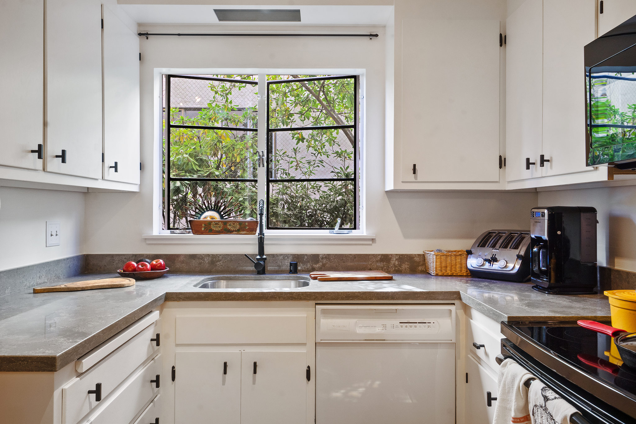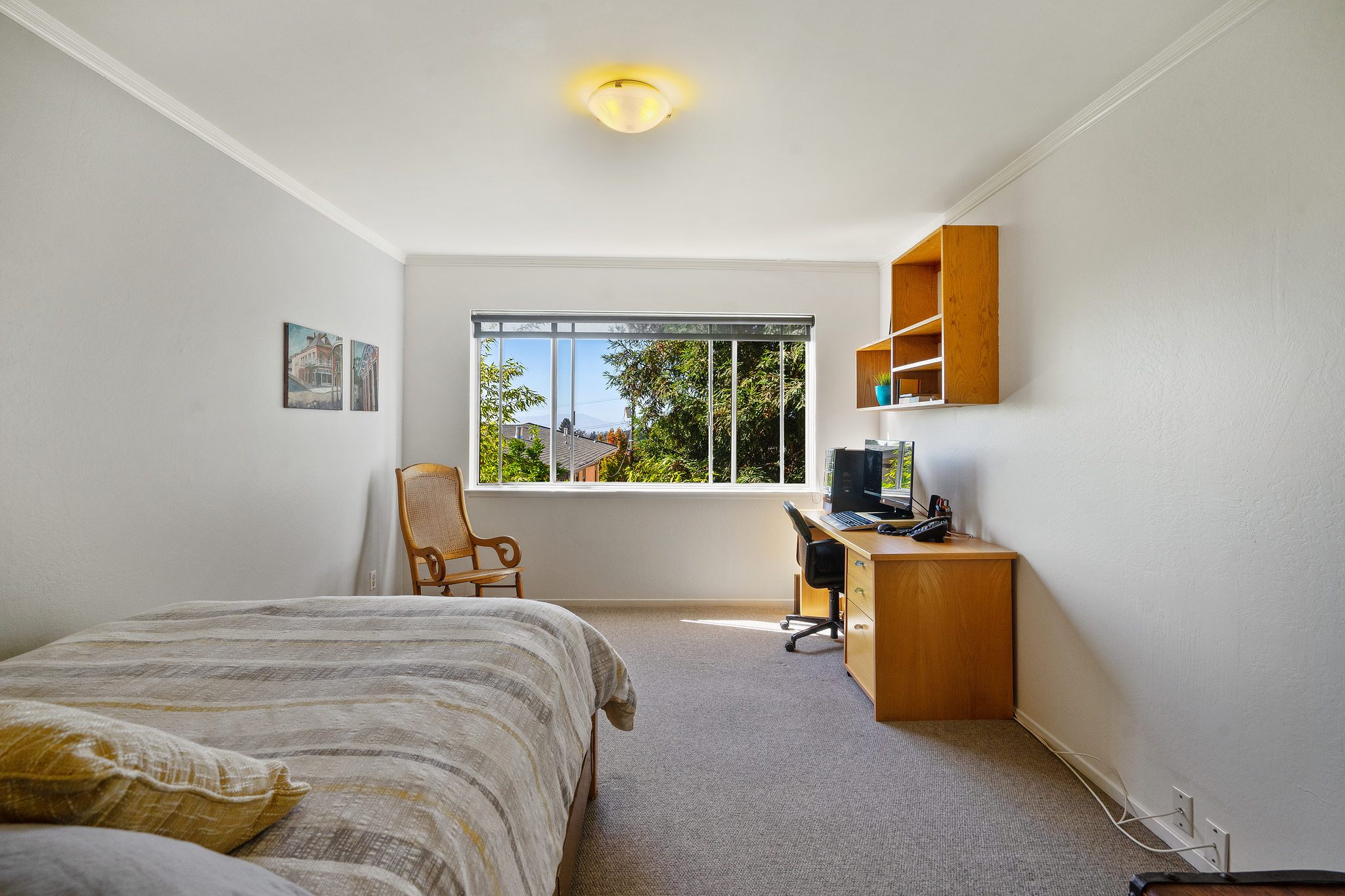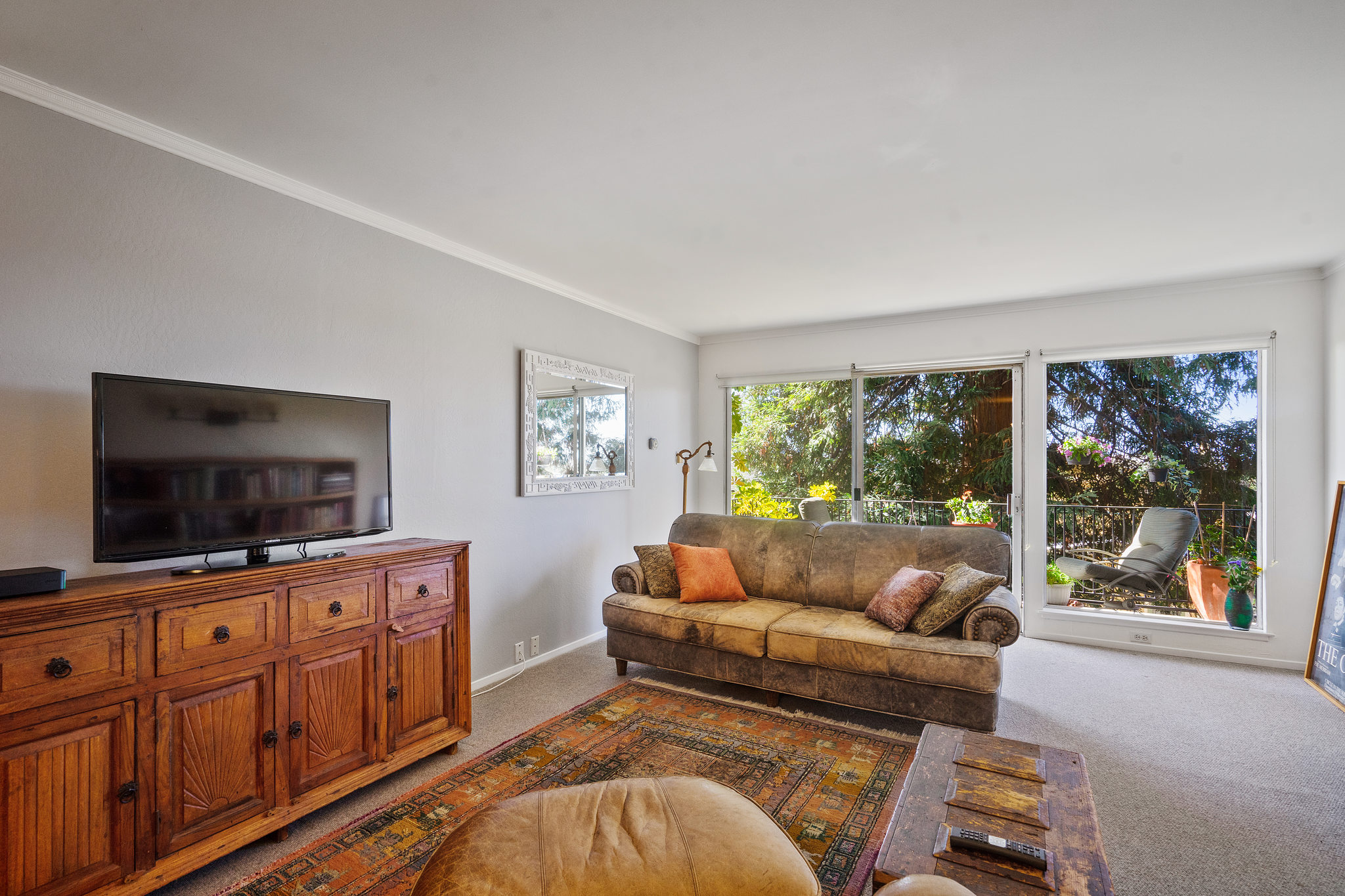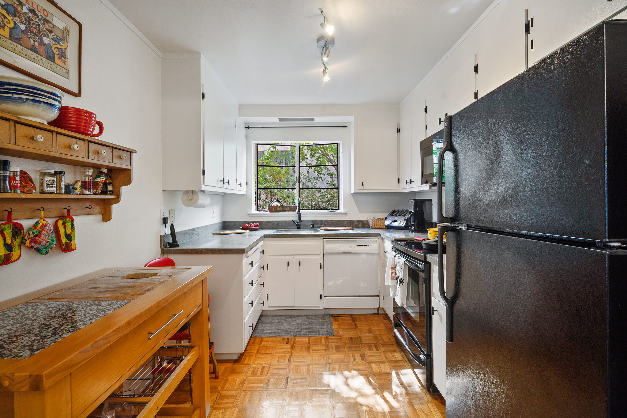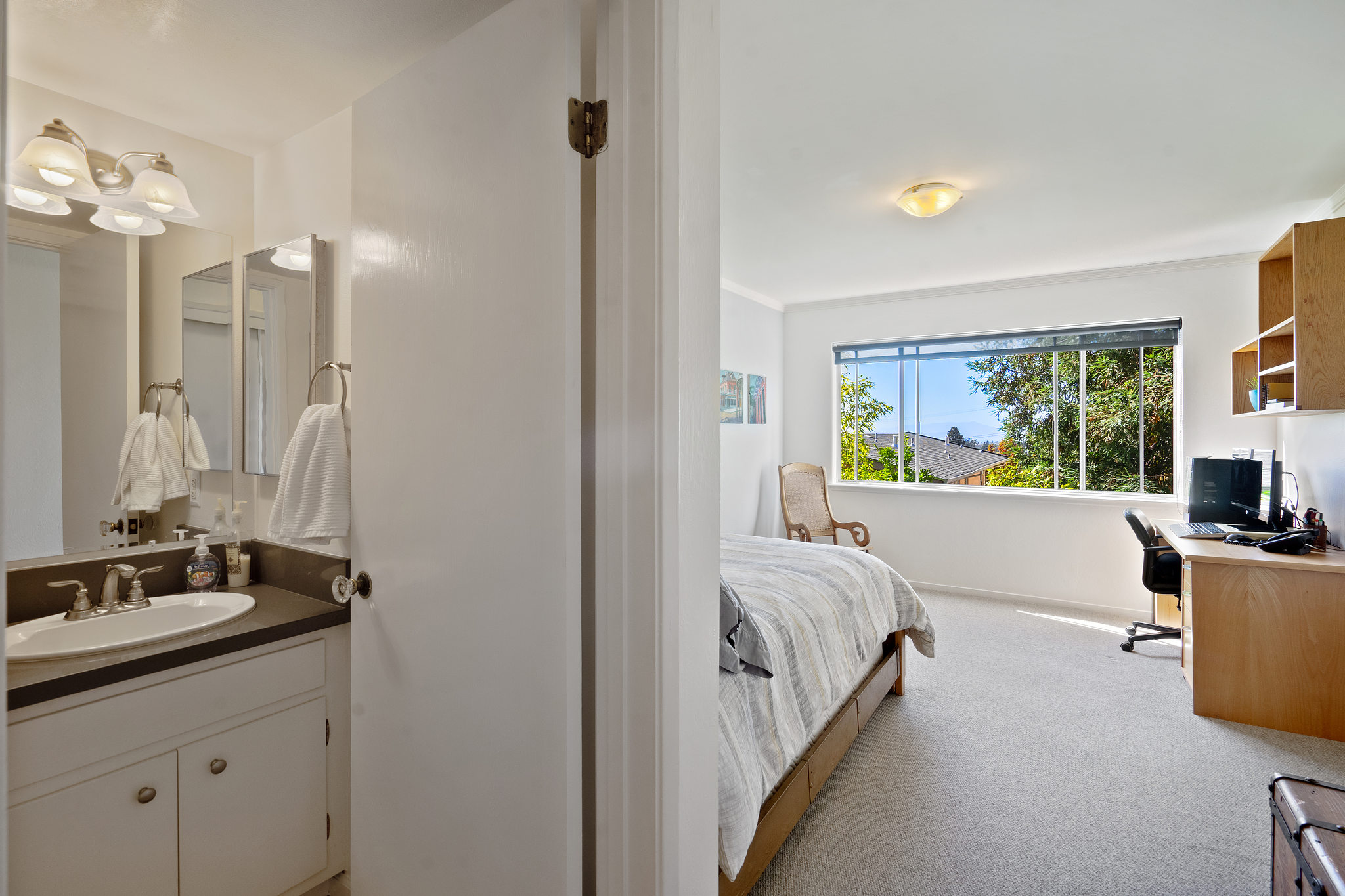 A sleek, well kept haven awaits at 5290 Broadway Terrace. The entryway greets you with two generous closets leading into a spacious, living room/dining room combo with custom built in bookshelves. Unwind the day with resort-like vibes thanks to the massive windows and sliding door leading to the patio. A gorgeous redwood tree provides privacy and when fog lifts, the City lights come into view. The lovely kitchen features new quartz countertops, and a unique space for a butcher block prep cart or turn it into your own mini bar ( coffee or cocktails)! The bedrooms, both with en-suite bathrooms, are on opposite sides of the unit for privacy. Large windows give ample light throughout the day and being on the second level provides a wonderful breeze. Wonderful quick walk to College Ave shops and to Market Hall, a European style cluster of shops (bakery, deli, wine, fishmonger, meats and poultry, grocery). Move in before the holidays!